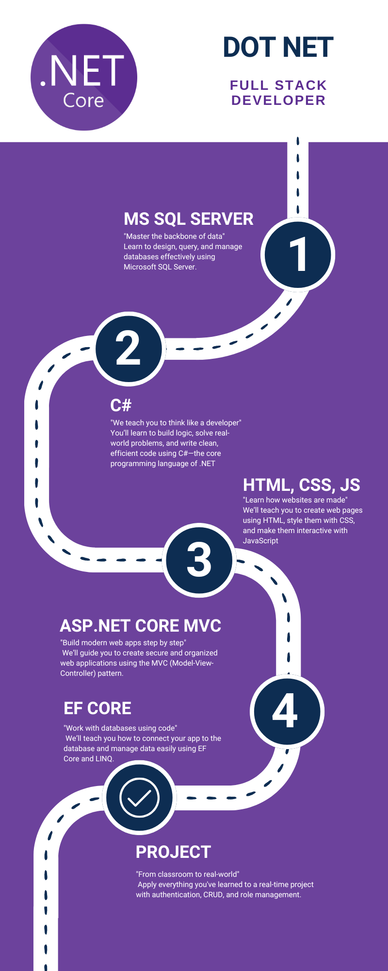 At Microcare Academy, our .NET Full Stack course is designed to take you from a beginner to a job-ready developer in just 3 months. You’ll learn both front-end and back-end development, work with real-time projects, and get hands-on with the tools and technologies used in the IT industry today.
